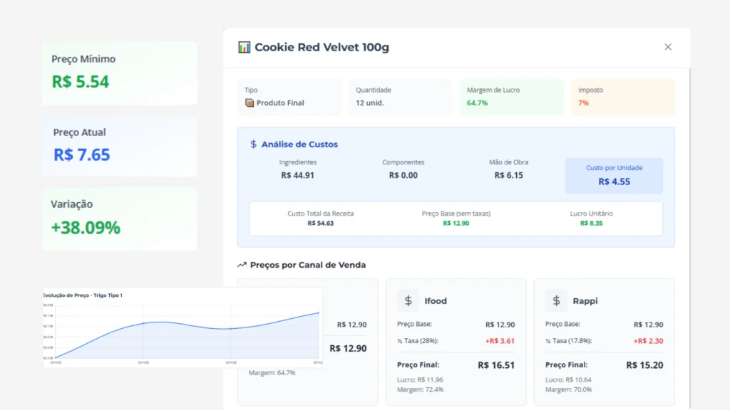 Sim. Ele é pensado para confeitarias, lanchonetes, padarias e qualquer negócio que precise saber o custo real de cada produto.